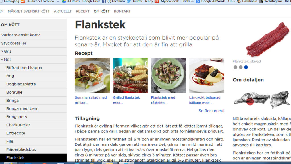 Det är också tydligt att många som kommer till webbplatsen är ute efter att hitta recept, ungefär en tredjedel av besöken kommer till receptavdelningen. Många gillar också att titta på filmer om styckning på Youtube, korta och enkla om detaljstyckning av gris, nöt och lamm.