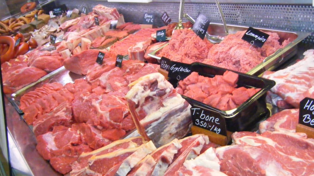 en blomsteraffär där. En liten annorlunda affärsidé med kött utanför en