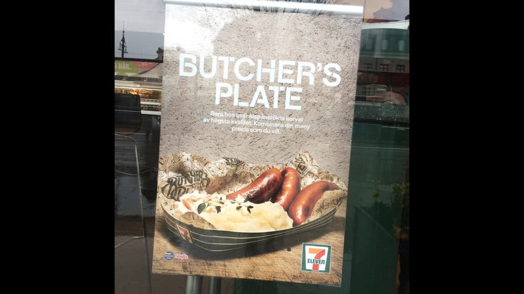 Jag blir glad när man inkluderar hela kedjan och väljer att lyfta fram svenskt kött som en kvalitets- och hygienfaktor, till exempel som på Max hamburgerkedja och som på bilden, i 7-Elevens senaste korvkampanj. Det bidrar förhoppningsvis till att frågan om var maten kommer ifrån kommer högre upp på agendan, både i privata och i offentliga matsammanhang, och att vi gör allt fler medvetna val även i matbutiken och på restaurangen.