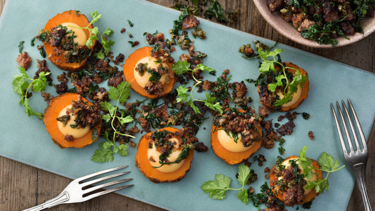 Bakad morot med isterbands-strössel och ancho-majonnäs