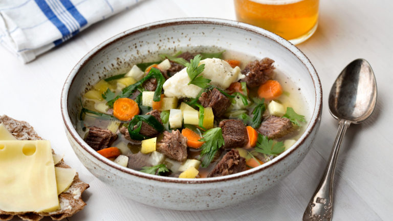 Det här är traditionell svensk husmanskost, kött med ben som ger en fantastisk buljong med mycket umamismak. För extra mättnad kan du servera gammaldags klimp i soppan.
